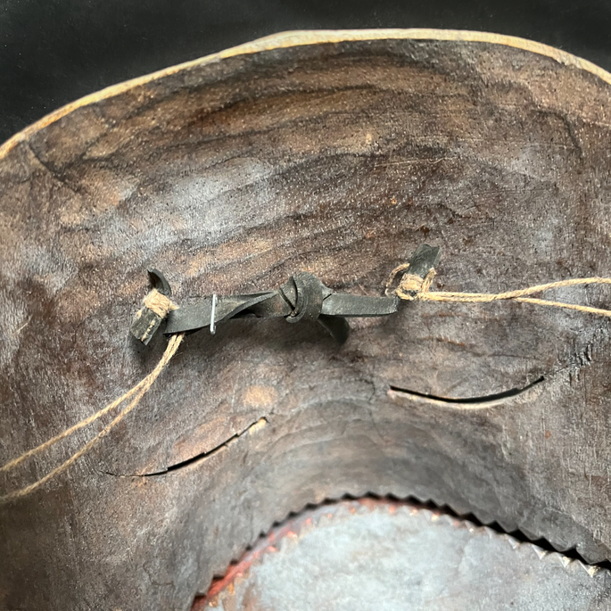 A lovely old charming wooden carved Dance mask, featuring the Frog Princess effigy , an articulated jaw . Unfortunately, the rubber binding has shorn on the back. In Good condition. H17cm W15cm. Collected in situ before 1950by Joachim Knorpp, Munich, Ex Geman Collection.